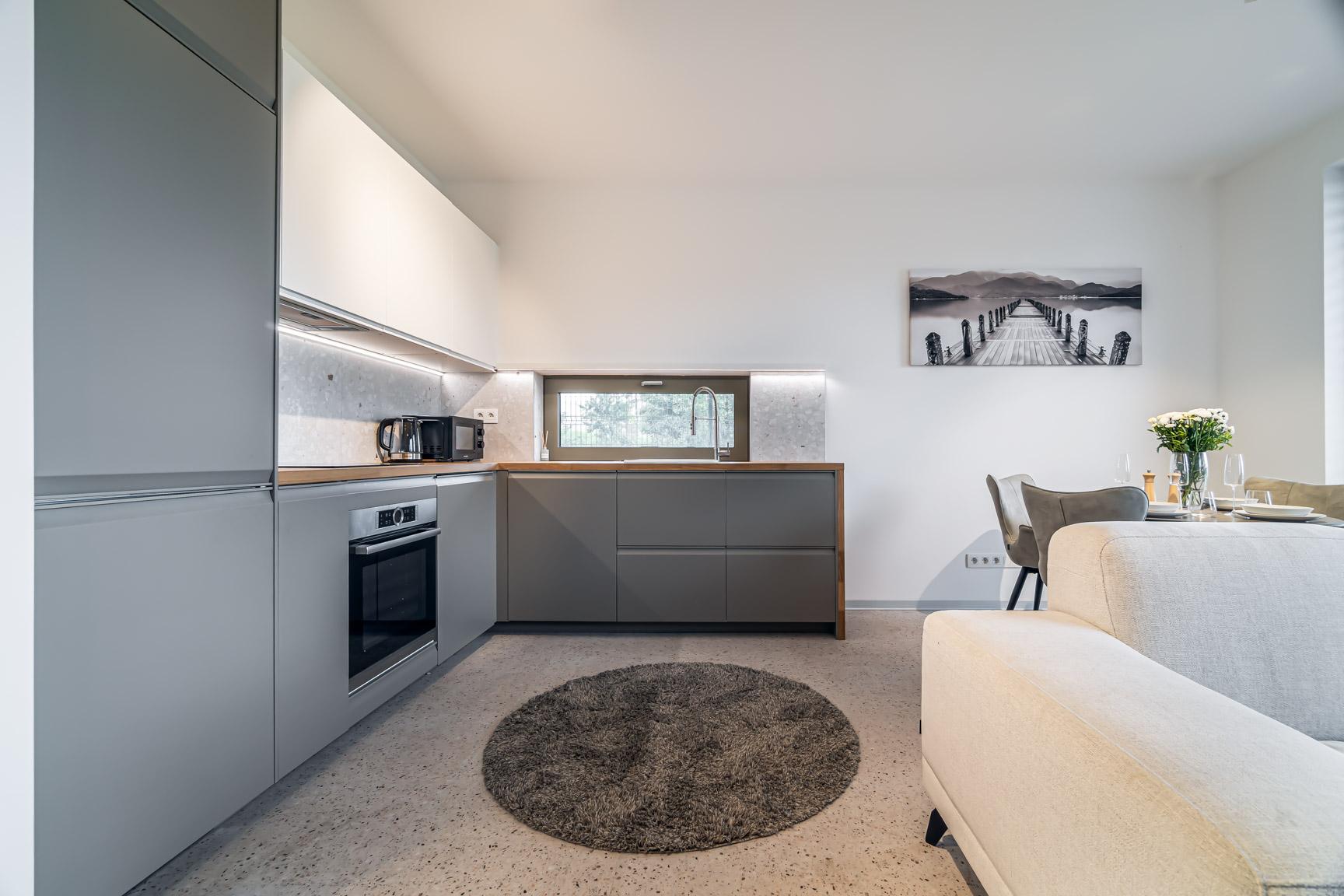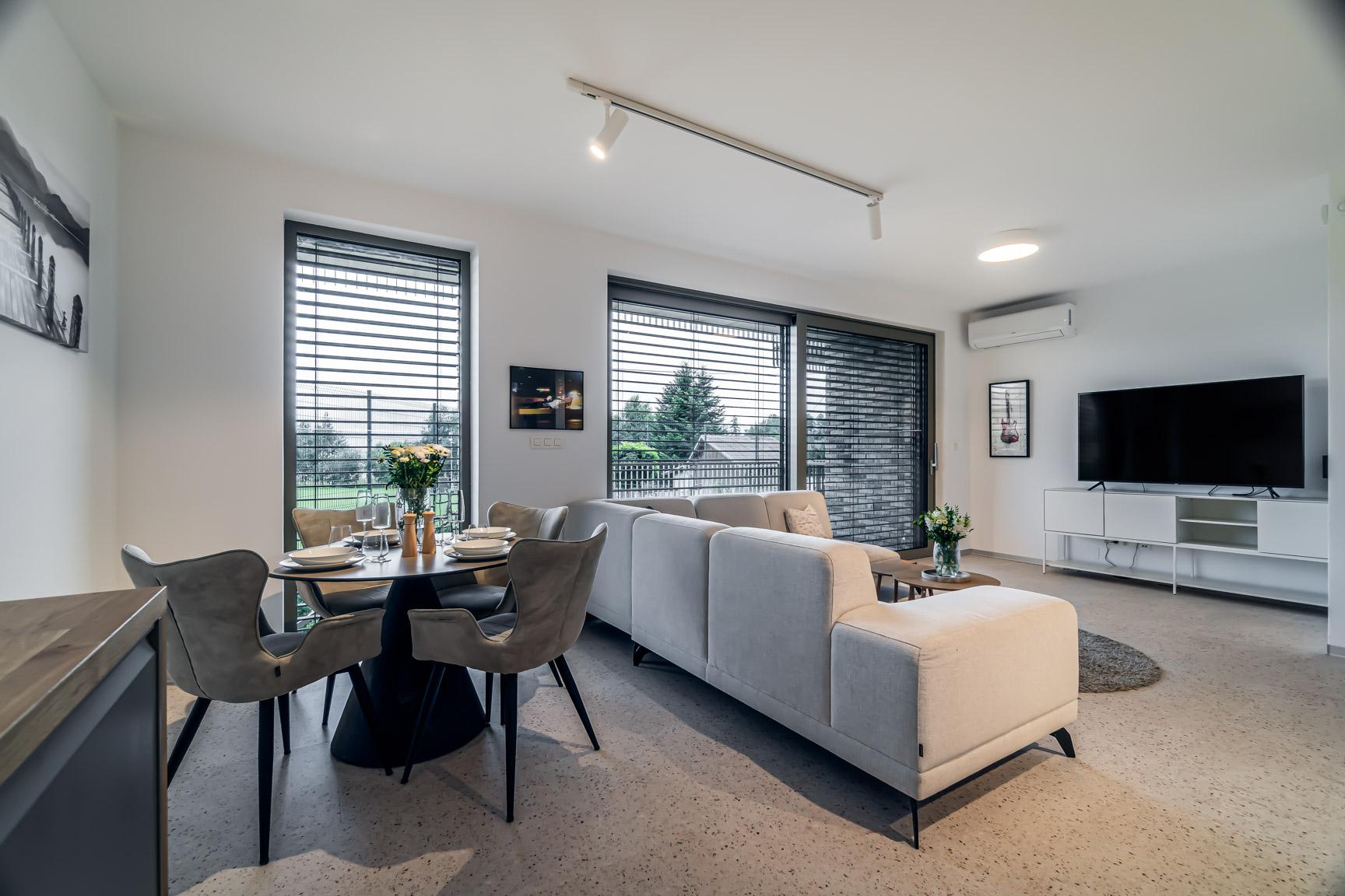 Každý apartmán je vybavený plne zariadenou kuchyňou s umývačkou riadu, dvomi kúpeľňami a priestrannou terasou so sedením, kde si môžete vychutnať čerstvý horský vzduch. V záhrade je pripravený gril, parkovanie je zabezpečené priamo pri objekte.